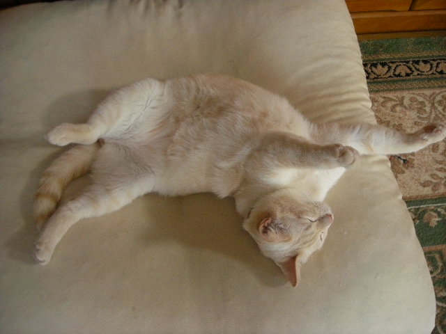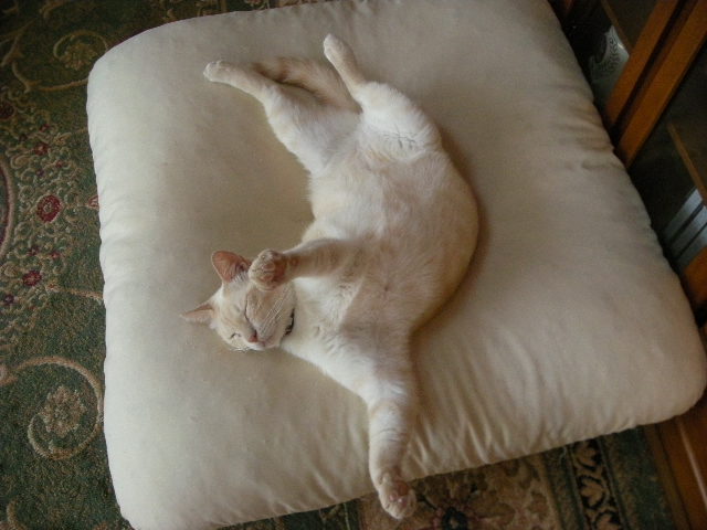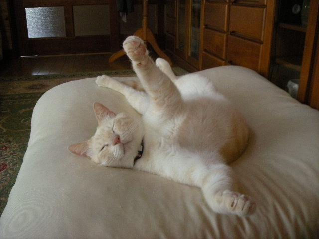 モカの寝姿は踊りを踊ってるようにも見えます。