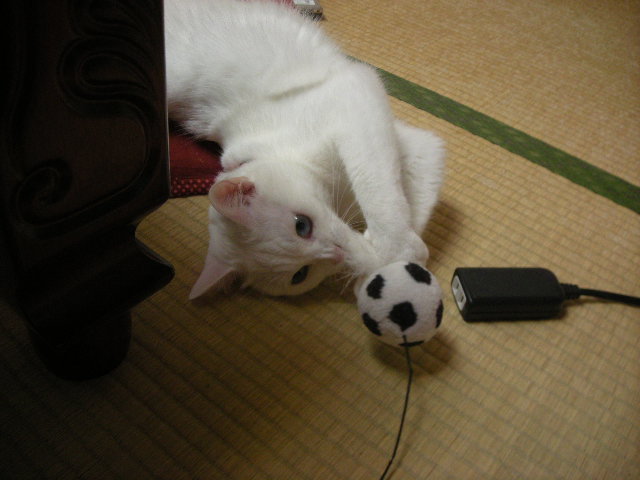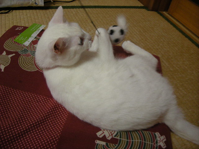 息子がアクアに「ぴやぁ~」と泣かれると、仕方ないなあと猫じゃらしで遊んでくれるからです。