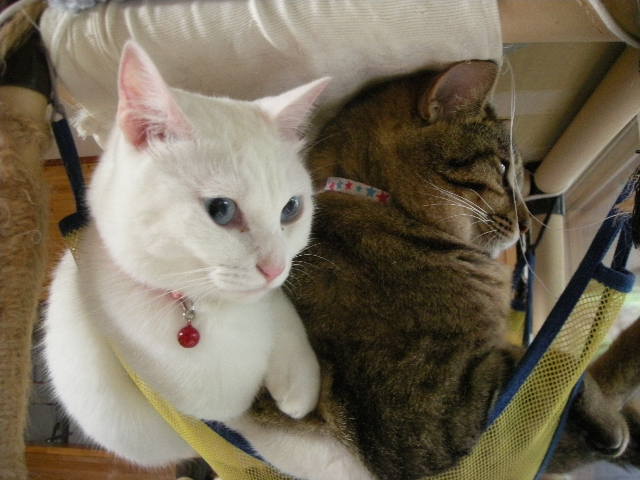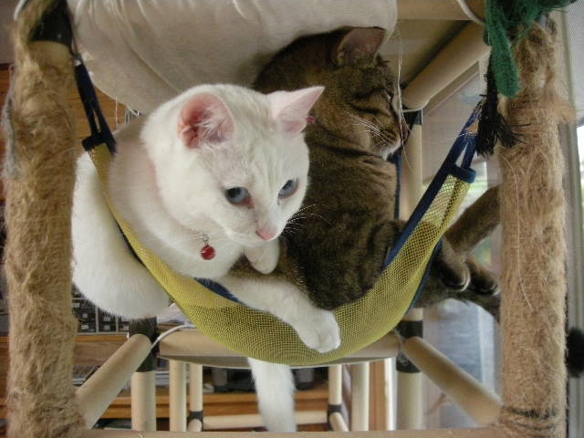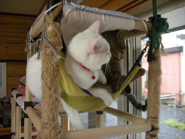 大好きなハンモックでくつろぐアクアとオーク