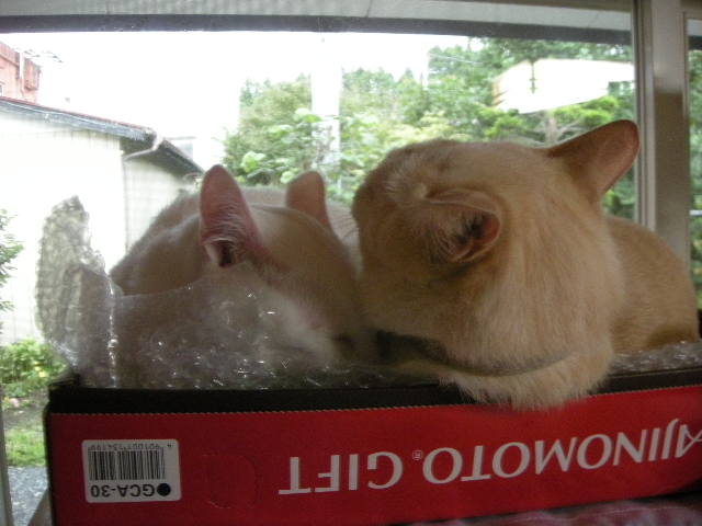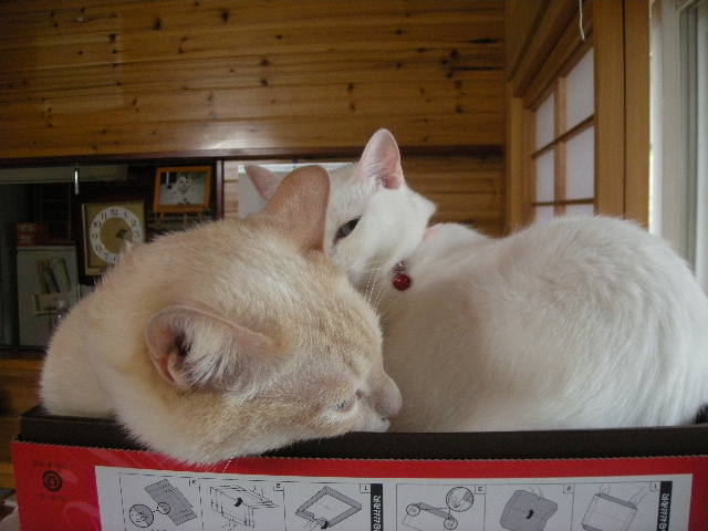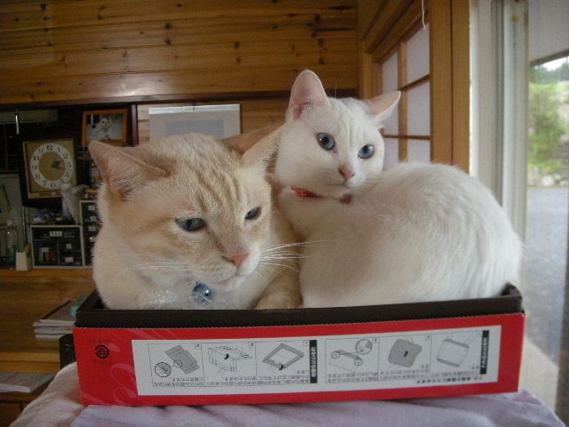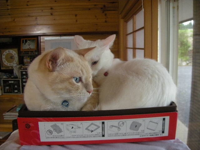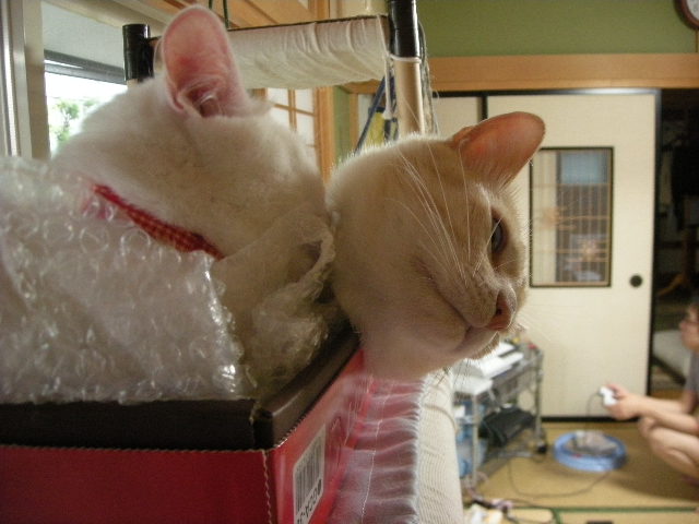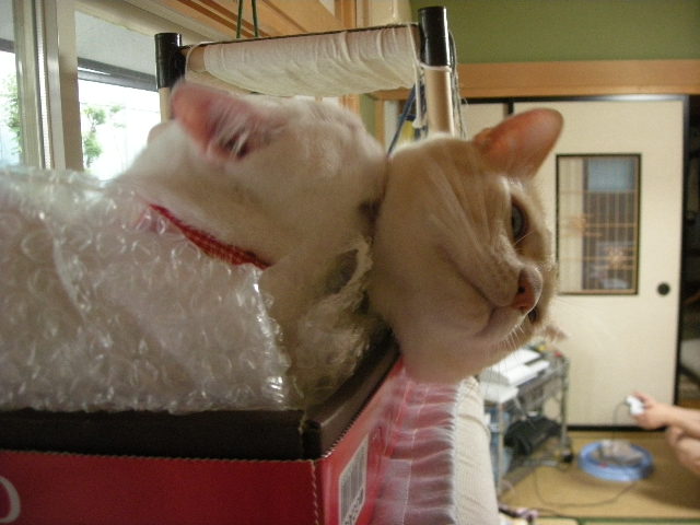 モカタワーの上に置いた箱は以前大人気で、一緒に入っているのもよく見かけます。