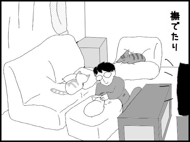 自分の周りに猫たちが集まるのが、密かに嬉しいらしいです。