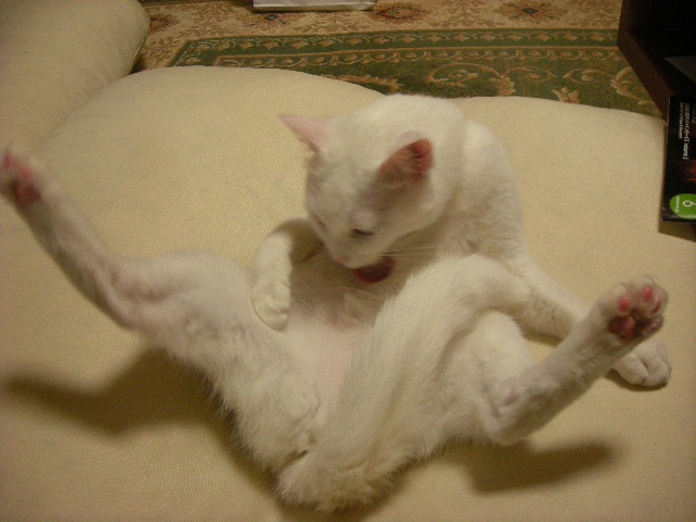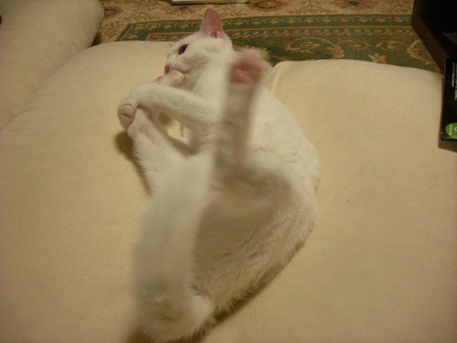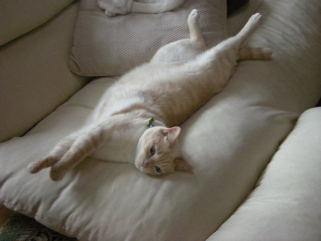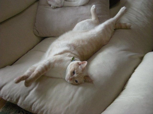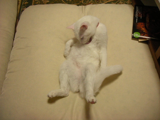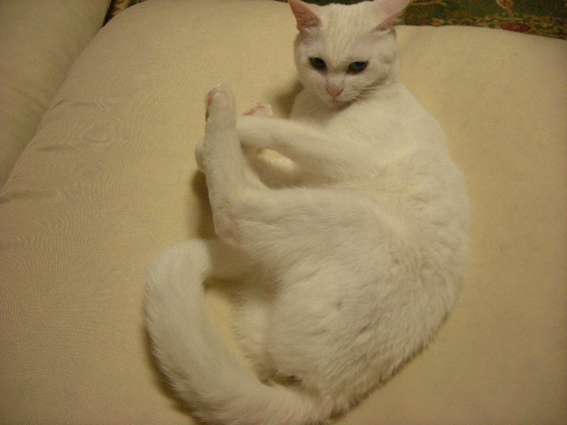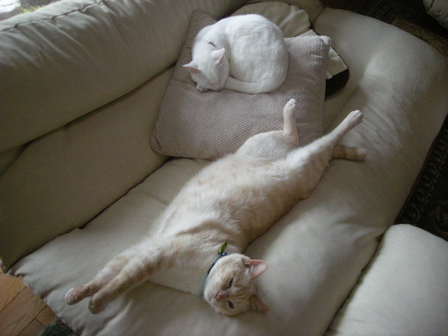 ソファのくぼみが体にフィットするらしく、いつも誰か(人間をのぞく)が使っているだ。