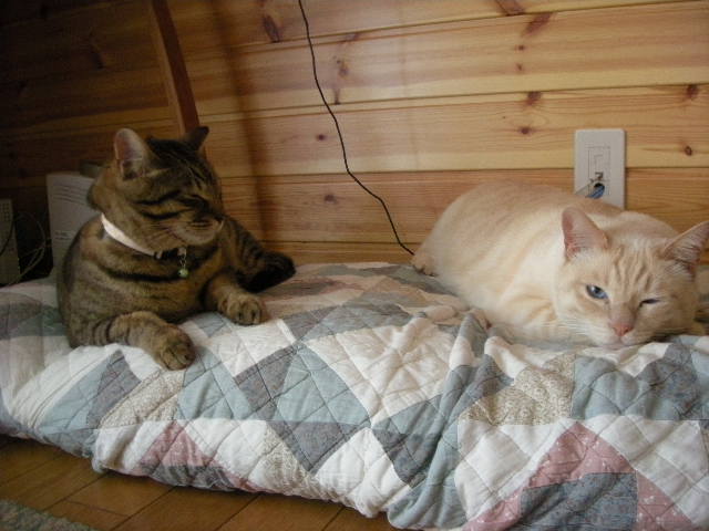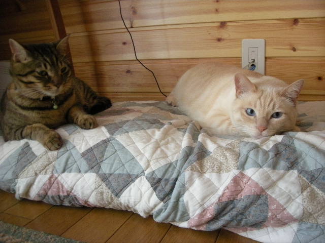 まだまださわやかな日々が続いていますが、時々じとっと暑い時間帯ってありますねえ。毛皮を抜くことができない3匹にはつらいでしょう。