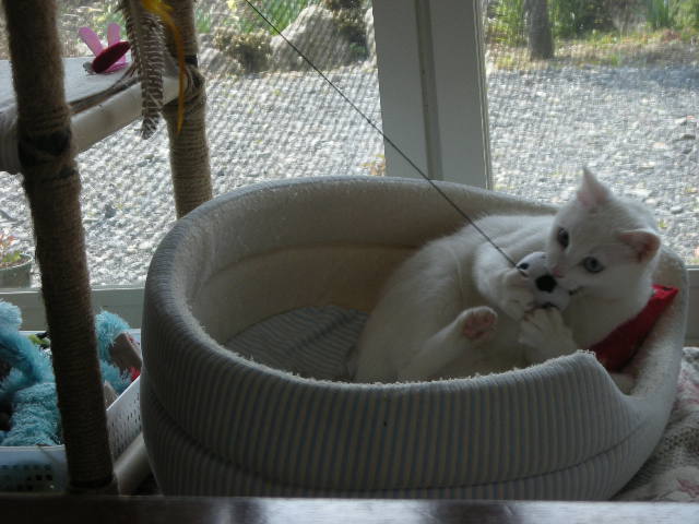 オークと兄妹。いつか白で碧眼の子をと願っていた娘が里親募集のサイトで見つけた子。うちに来たときには真っ白だったが、麿眉が発現。