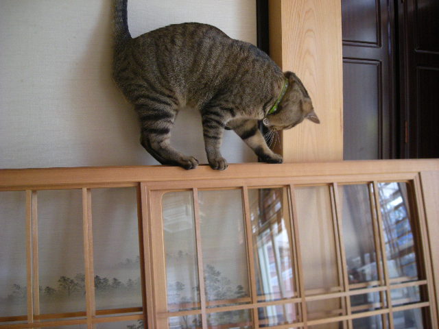 8枚の障子を張り替えるうちに、モカがサッシを開けて逃亡。約15分後、勝手にご帰還。