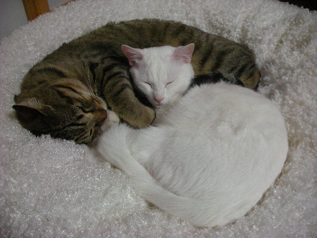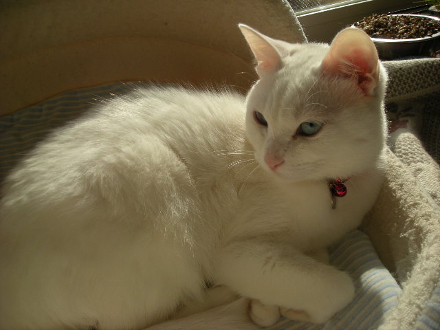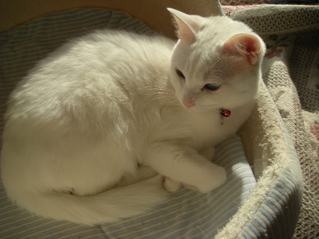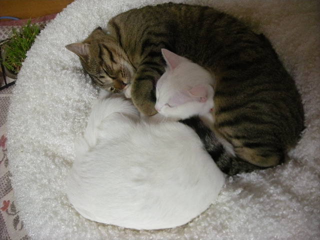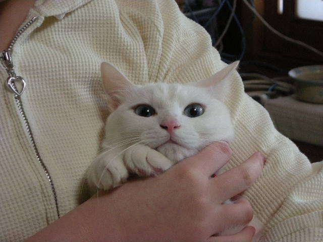 オークと兄妹。いつか白で碧眼の子をと願っていた娘が里親募集のサイトで見つけた子。うちに来たときには真っ白だったが、麿眉が発現。