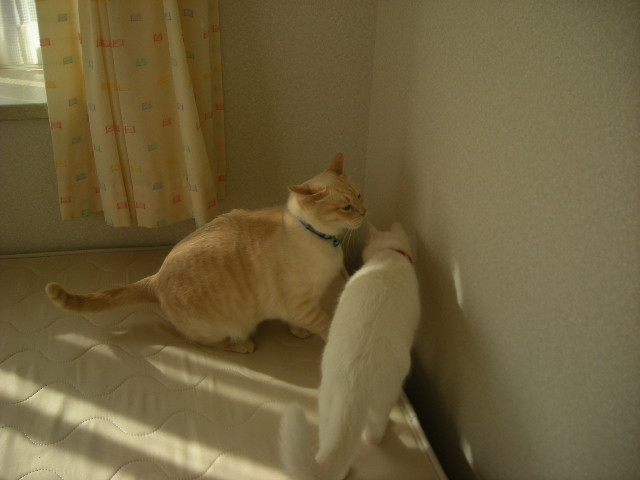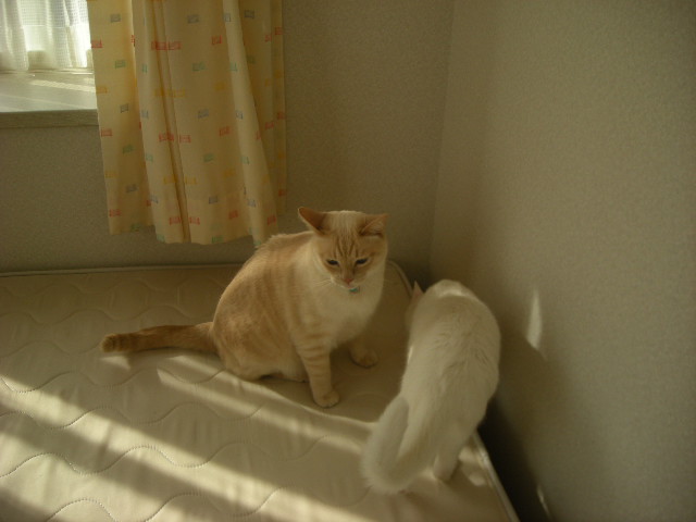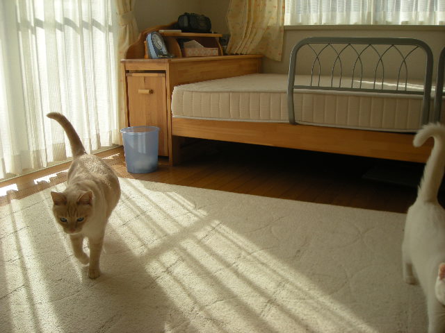 息子の部屋は日当たりが良く、ネコ部屋としては最適なんですが、息子がいる間は猫たちは閉め出されています。