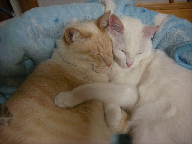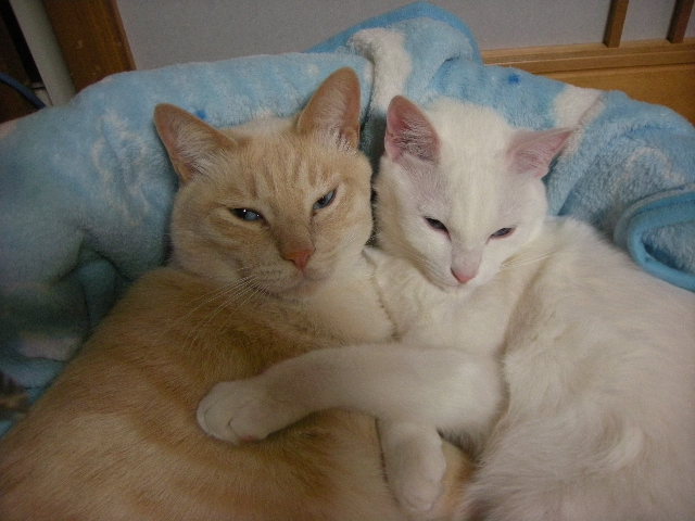 最近、アクアはモカと一緒に寝ています。