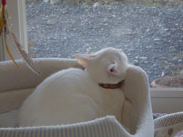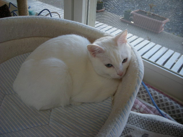 オークと兄妹。いつか白で碧眼の子をと願っていた娘が里親募集のサイトで見つけた子。うちに来たときには真っ白だったが、麿眉が発現。