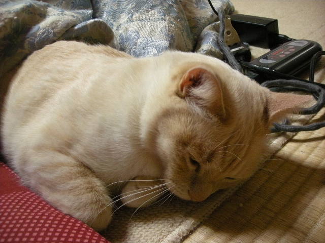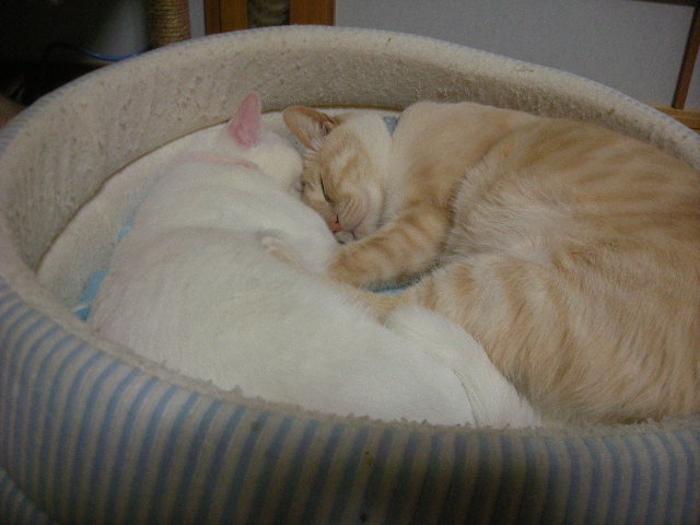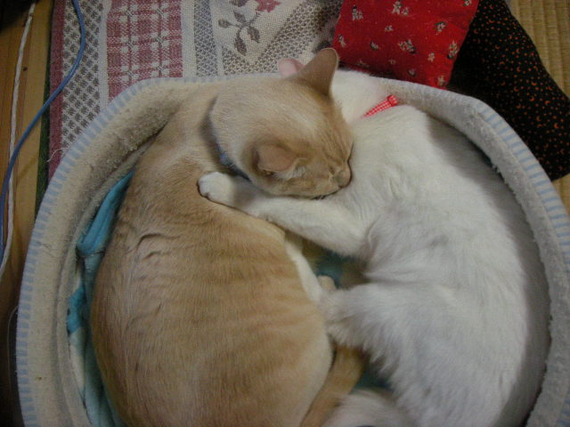 最近オークが独り寝ができるようになったのでアクアは甘え放題。