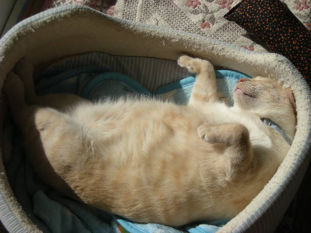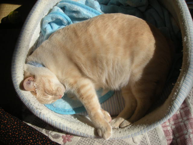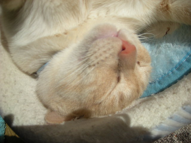 泥だらけで保護され、3歳にして去勢手術を受ける。飼い猫の経験があるのか、どれくらい野良猫だったのか、過去は一切不明。