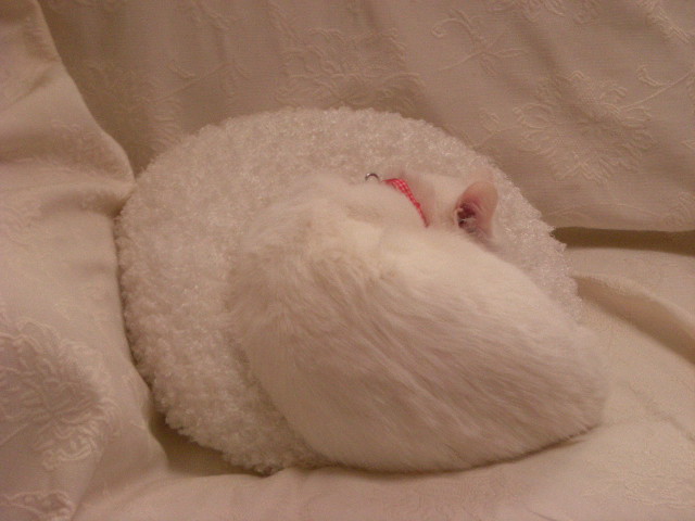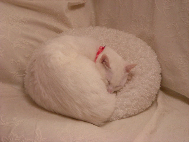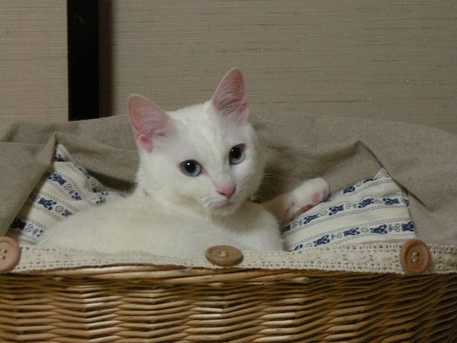 オークと兄妹。いつか白で碧眼の子をと願っていた娘が里親募集のサイトで見つけた子。うちに来たときには真っ白だったが、麿眉が発現。