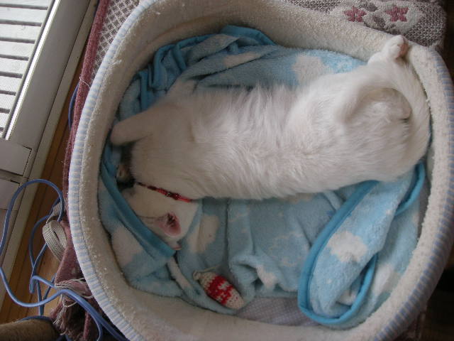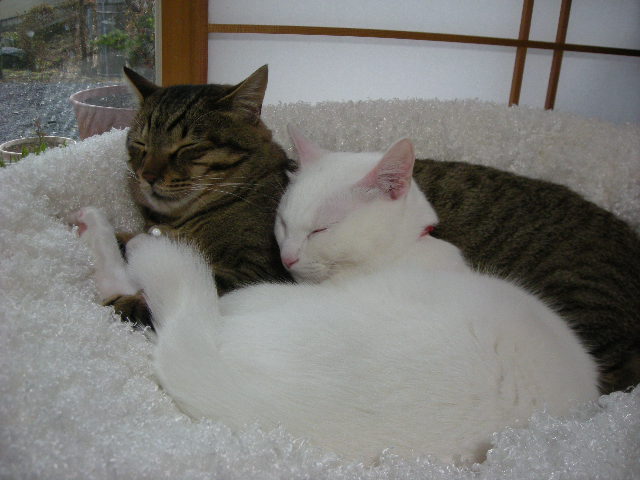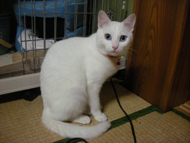 オークと兄妹。いつか白で碧眼の子をと願っていた娘が里親募集のサイトで見つけた子。うちに来たときには真っ白だったが、麿眉が発現。