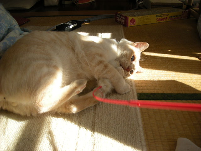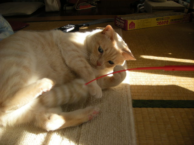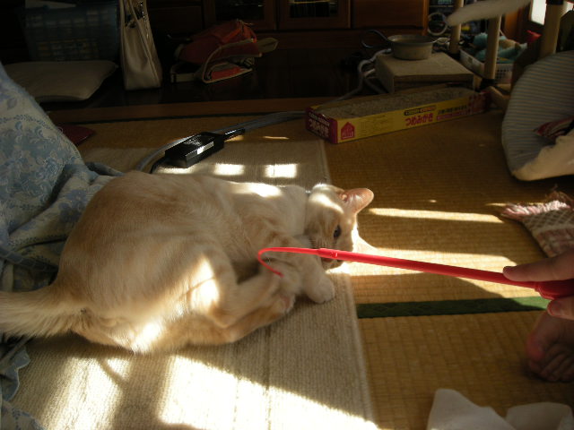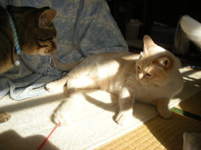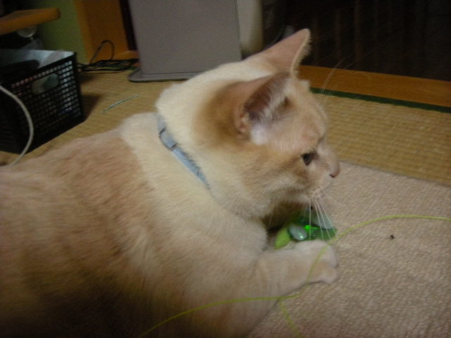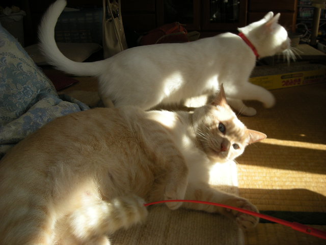 これはたまたまトンボのオモチャを抱えて二人を眺めていただけで、いつもは率先して走り回っています。
