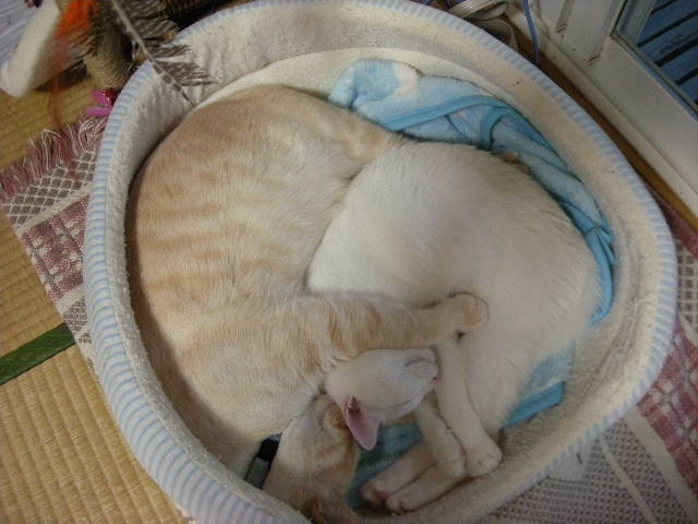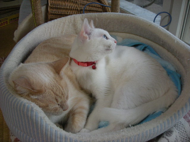アクアと兄妹。アクアをもらう際、モカがあまりに手がかからなかったため、もう一匹くらいもらっても大丈夫だろうと一緒にもらわれてきた。