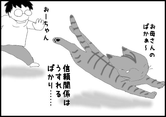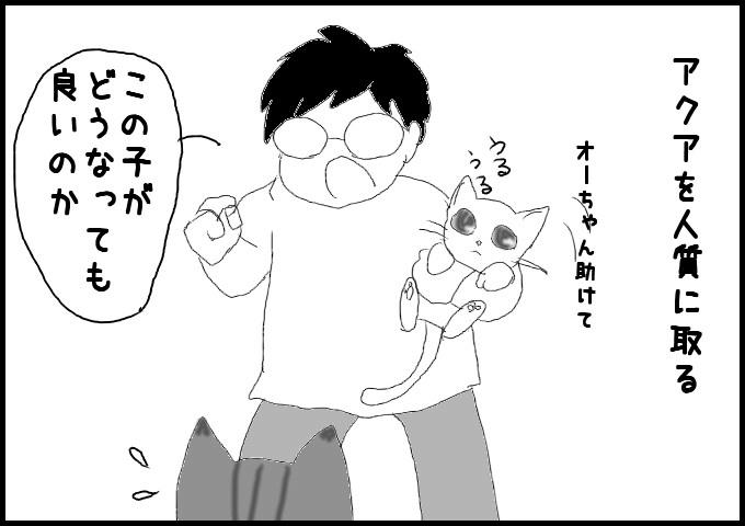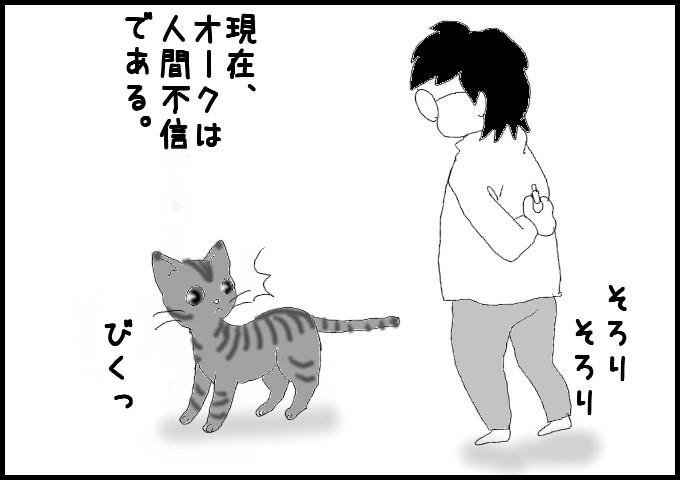 泥だらけで保護され、3歳にして去勢手術を受ける。飼い猫の経験があるのか、どれくらい野良猫だったのか、過去は一切不明。