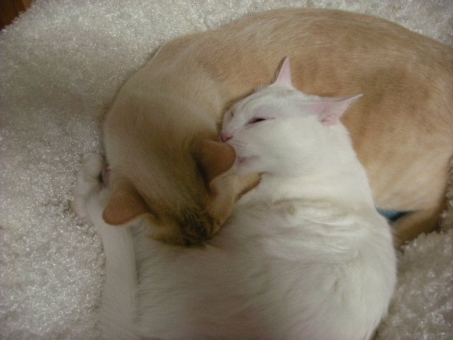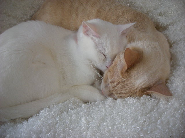 オークと兄妹。いつか白で碧眼の子をと願っていた娘が里親募集のサイトで見つけた子。うちに来たときには真っ白だったが、麿眉が発現。