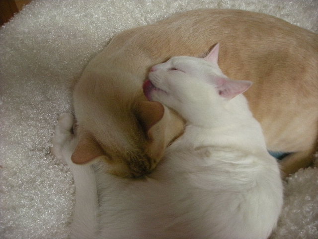 時々、アクアは日本昔話に出てくる悪いきつねに見えることが……ただ、毛繕いしているだけなのに、悪いこと、ささやいているように見えるでしょう?