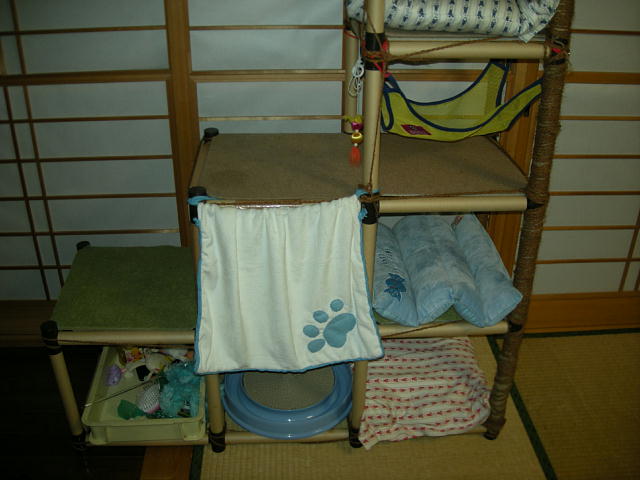そして、新しい家族を迎えるために作っておいたタワーはこの日から「モカタワー」になりました。モカタワー初号機 です。