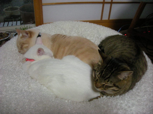 いや、モカは一人で寝ていても寒くない。寄っていくのはちびっ子達。