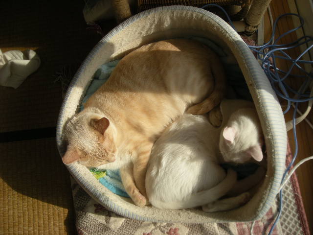 アクアと兄妹。アクアをもらう際、モカがあまりに手がかからなかったため、もう一匹くらいもらっても大丈夫だろうと一緒にもらわれてきた。