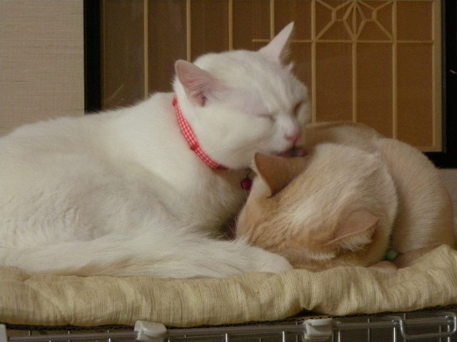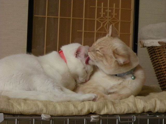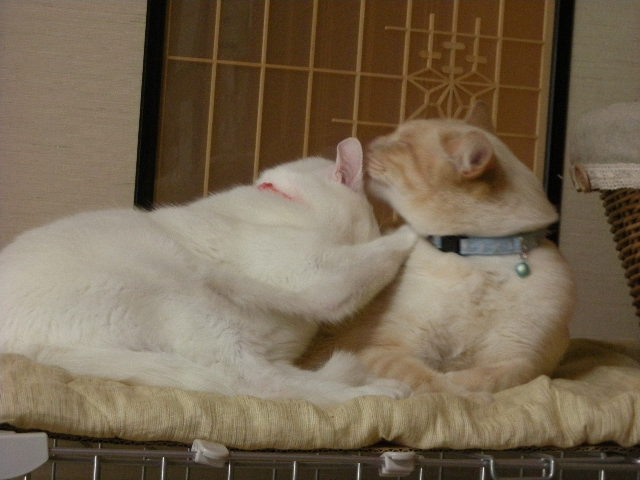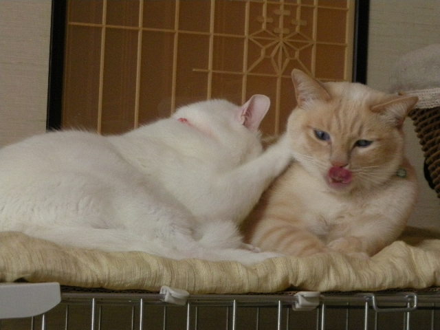 最近少し大人になったのか、オークやモカに毛繕いをしているのをよく見かける。