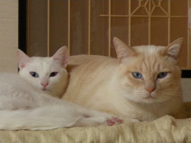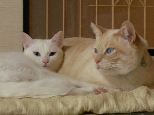 オークと兄妹。いつか白で碧眼の子をと願っていた娘が里親募集のサイトで見つけた子。うちに来たときには真っ白だったが、麿眉が発現。