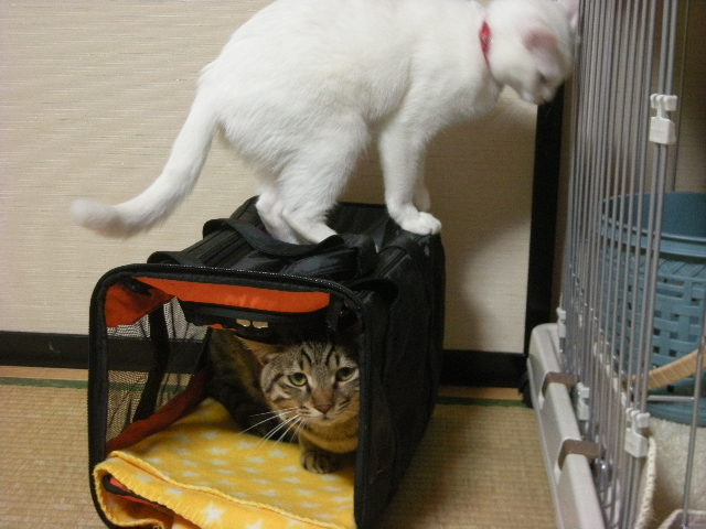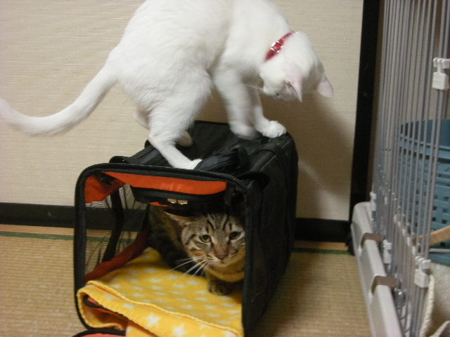 お医者さんに行ったまま片づけずに出しておいたキャリーバック