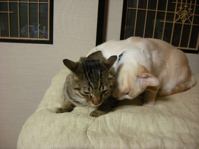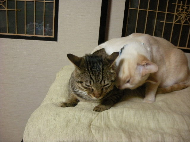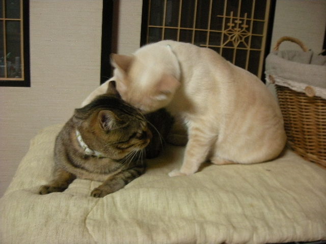 最近は仔猫たちも大きくなり、仔猫たちはまだ甘えたい様子だが、モカの方は少しずつ一人前扱いをするようになった。