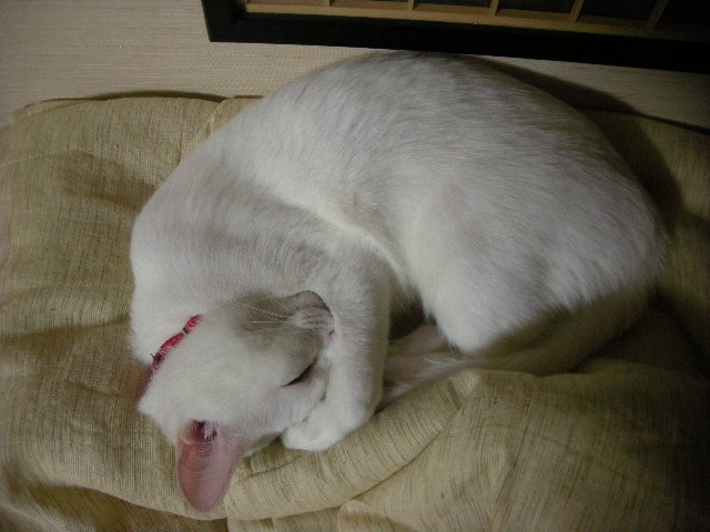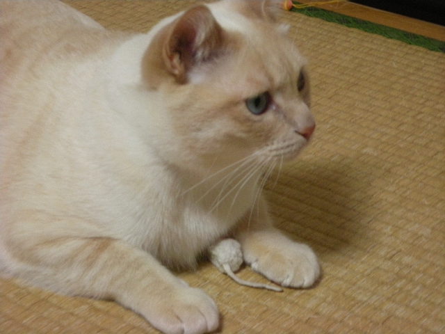 泥だらけで保護され、3歳にして去勢手術を受ける。飼い猫の経験があるのか、どれくらい野良猫だったのか、過去は一切不明。