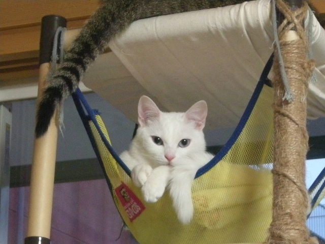 オークと兄妹。いつか白で碧眼の子をと願っていた娘が里親募集のサイトで見つけた子。うちに来たときには真っ白だったが、麿眉が発現。