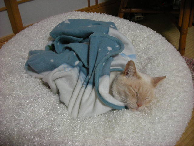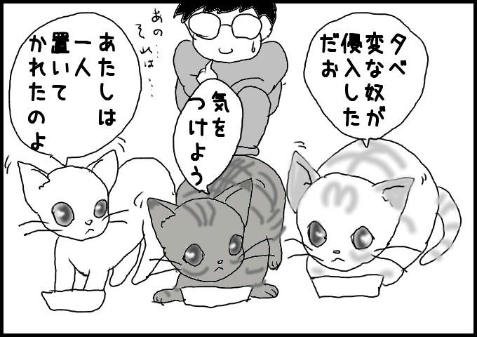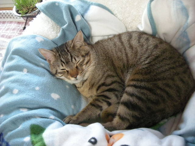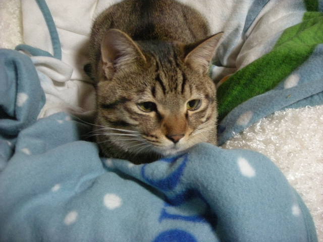 泥だらけで保護され、3歳にして去勢手術を受ける。飼い猫の経験があるのか、どれくらい野良猫だったのか、過去は一切不明。