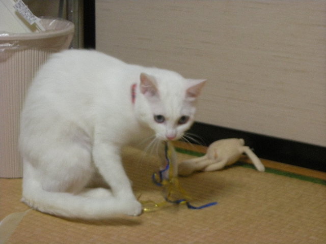 オークと兄妹。いつか白で碧眼の子をと願っていた娘が里親募集のサイトで見つけた子。うちに来たときには真っ白だったが、麿眉が発現。