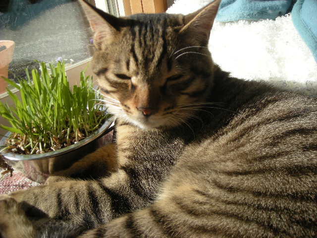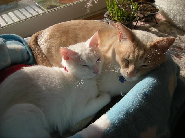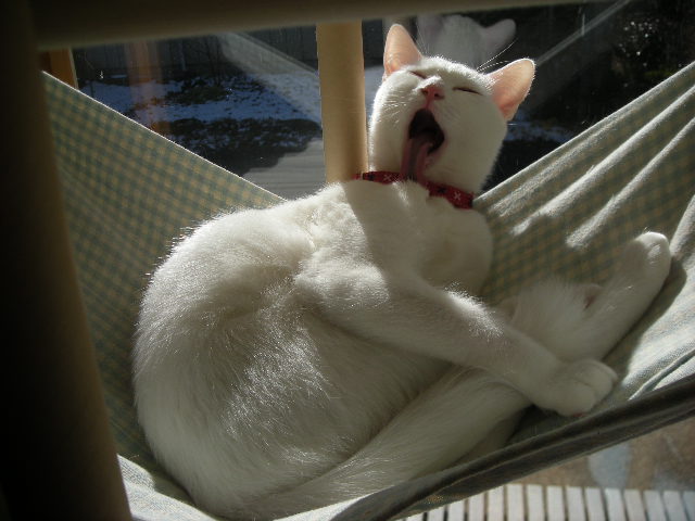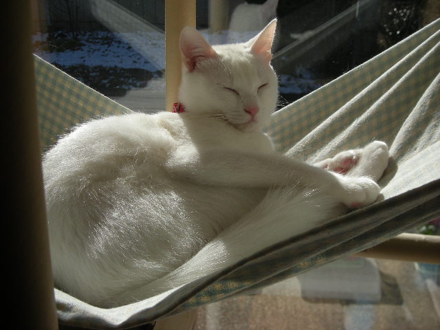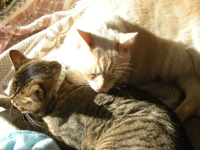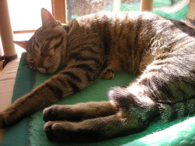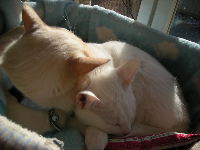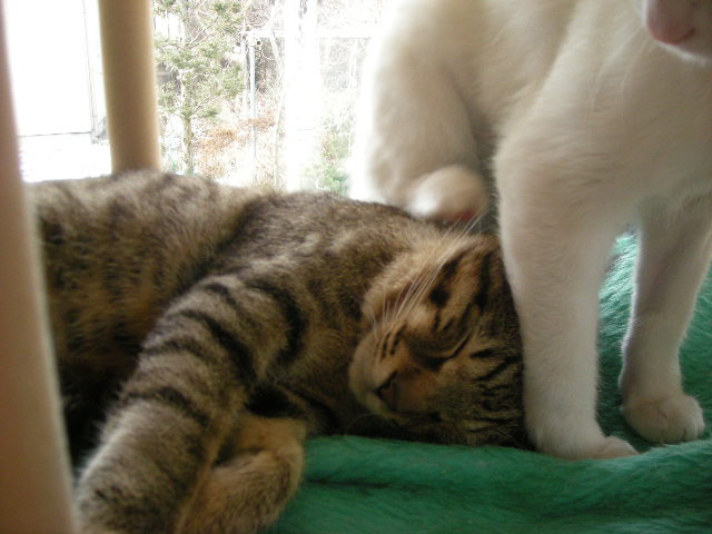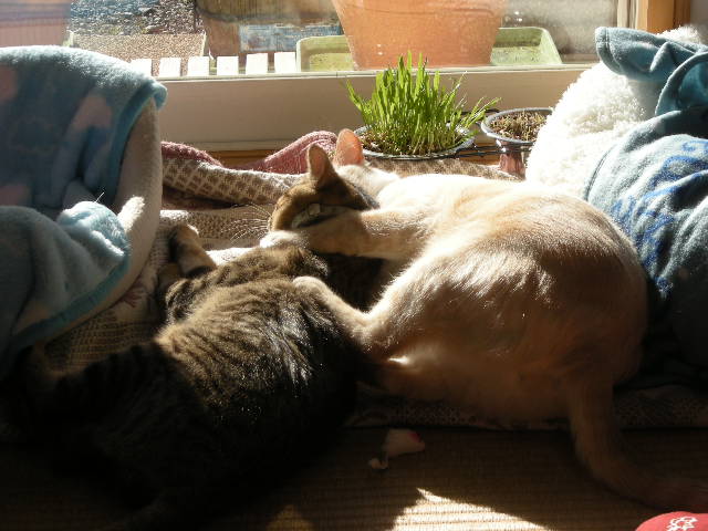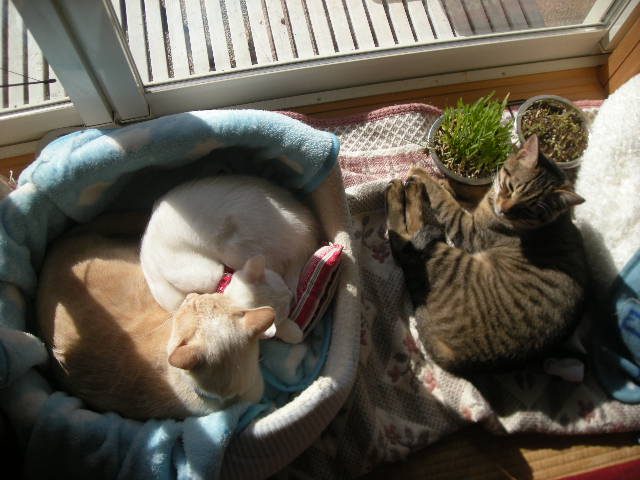 息子がいない間、日当たりのいい息子の部屋は、猫たちのいいくつろぎのスペースになっています。