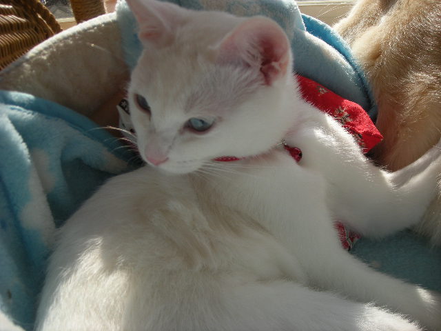 オークと兄妹。いつか白で碧眼の子をと願っていた娘が里親募集のサイトで見つけた子。うちに来たときには真っ白だったが、麿眉が発現。