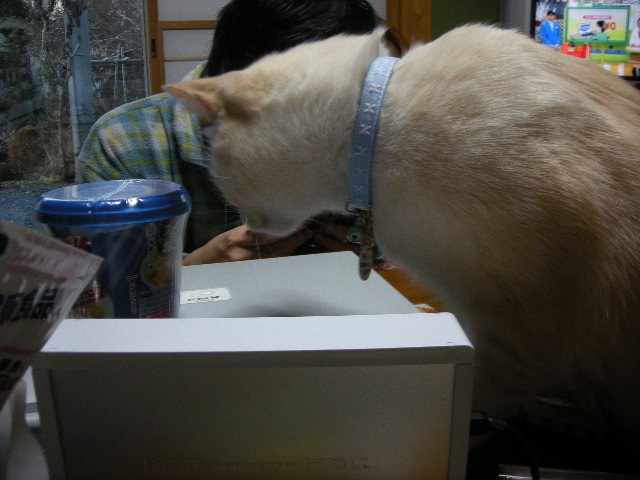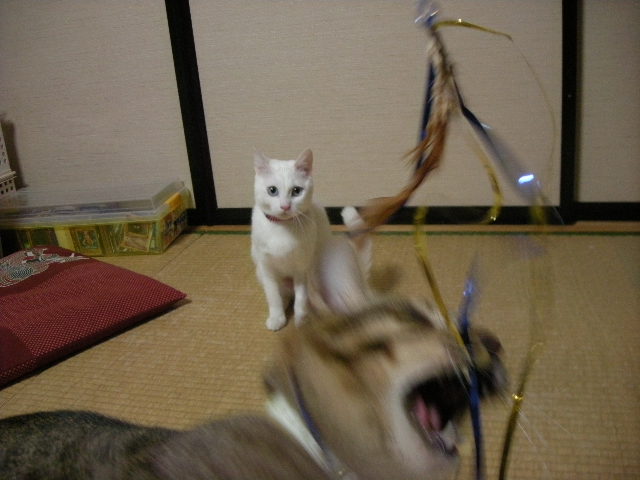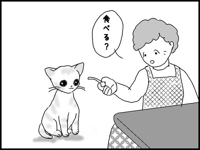 仲良くなる作戦も込めて、猫たちもいつもと違う贅沢を息子の手から