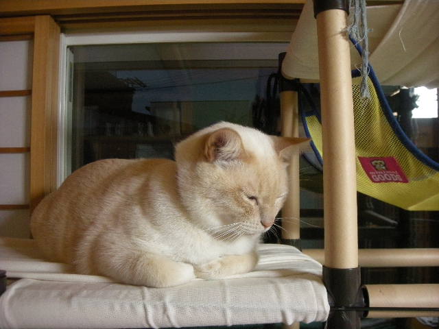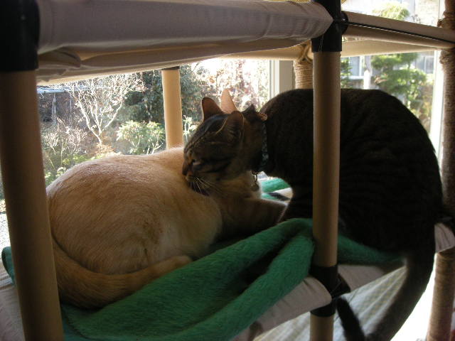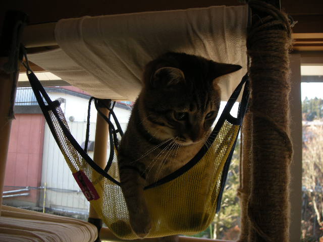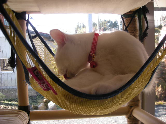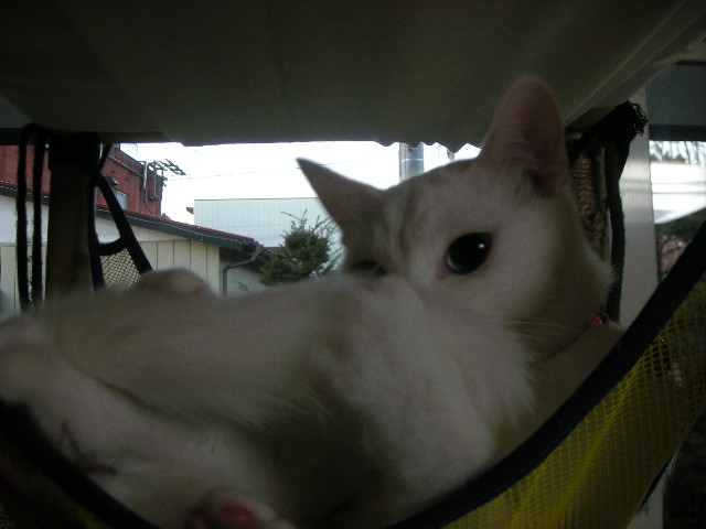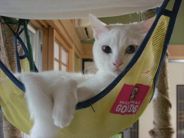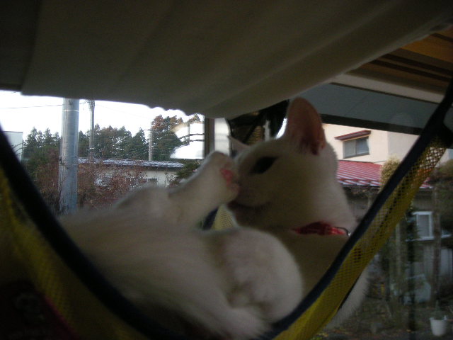 その間、アクアは一人ハンモックでご機嫌に毛繕い中。