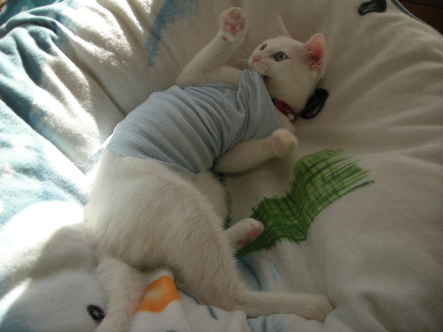 ブログをさまよっていると、女の子には傷の保護のため術後服を着せるといいらしい。
