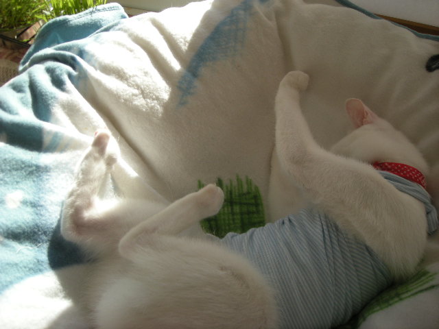 男の子の方はモカや先代猫で経験もありますし、傷も小さいので心配していないんですが、アクアの方は傷も大きい。