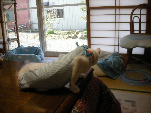 こたつでくつろいでいるところを拉致ったせいか、