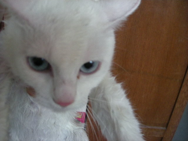 オークと兄妹。いつか白で碧眼の子をと願っていた娘が里親募集のサイトで見つけた子。うちに来たときには真っ白だったが、麿眉が発現。