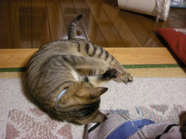 モカは……仰向けでじゃれます。それでも写真は、ボケボケになります。
