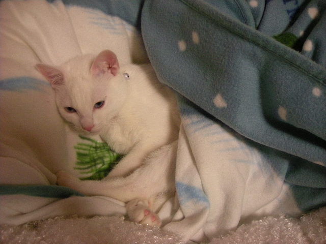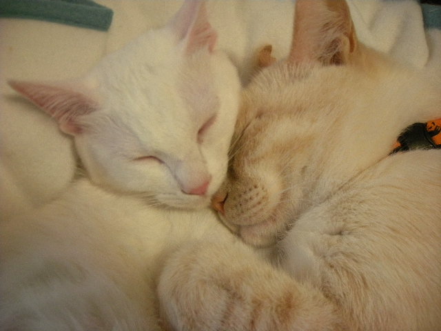 オークと兄妹。いつか白で碧眼の子をと願っていた娘が里親募集のサイトで見つけた子。うちに来たときには真っ白だったが、麿眉が発現。