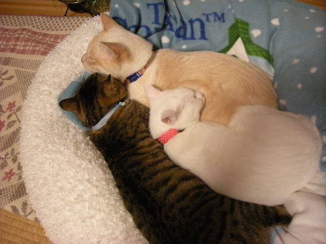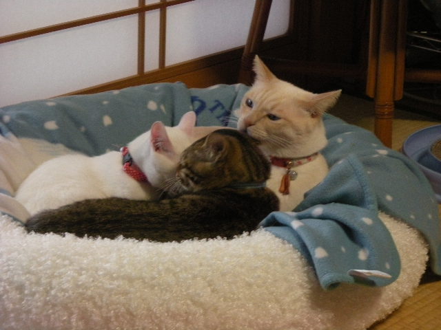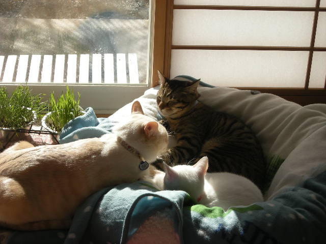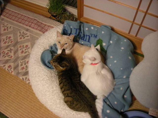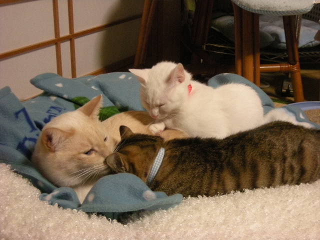 3匹一緒の写真が多いのは、かわいくてカメラを構えてしまうのもあるんですが、3匹で固まるのは暖を取るからで、動かないからでもあります。