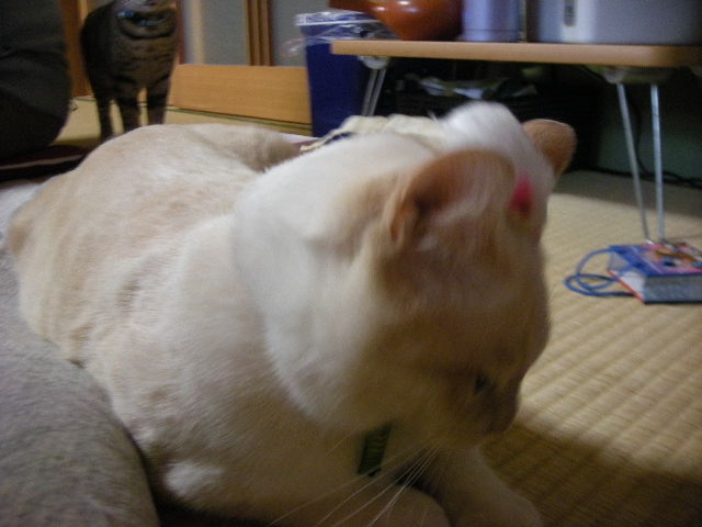 泥だらけで保護され、3歳にして去勢手術を受ける。飼い猫の経験があるのか、どれくらい野良猫だったのか、過去は一切不明。