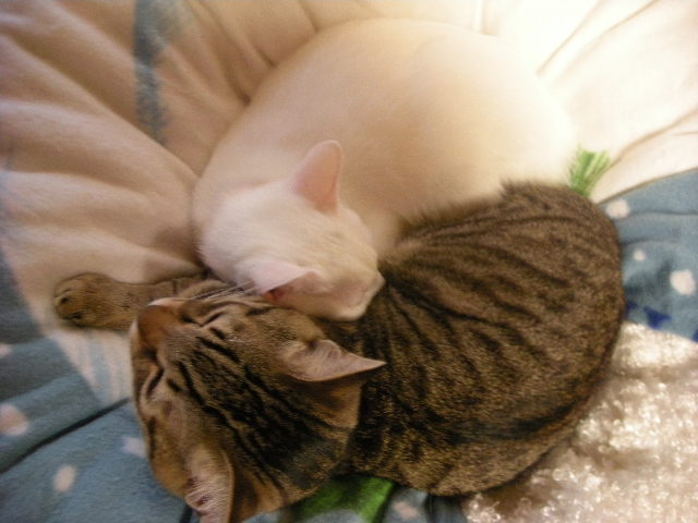 アクアと兄妹。アクアをもらう際、モカがあまりに手がかからなかったため、もう一匹くらいもらっても大丈夫だろうと一緒にもらわれてきた。