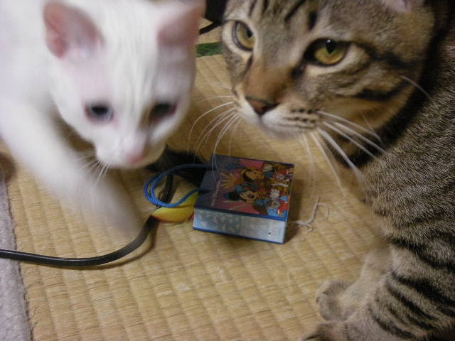 今は3匹で追いかけっこやかくれんぼうをすることが多いですが、仔猫が来る前はおもちゃでもよく遊びました。