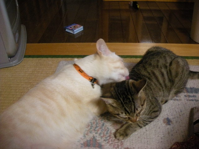 せっせと舐めてあげているモカですが、3回に1回はスルーします。
