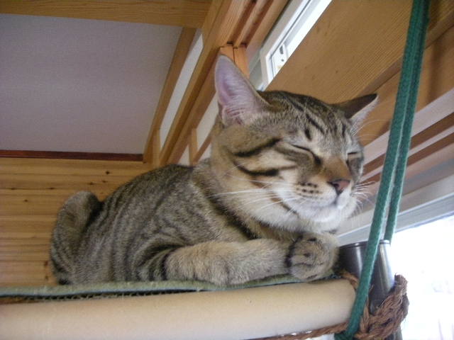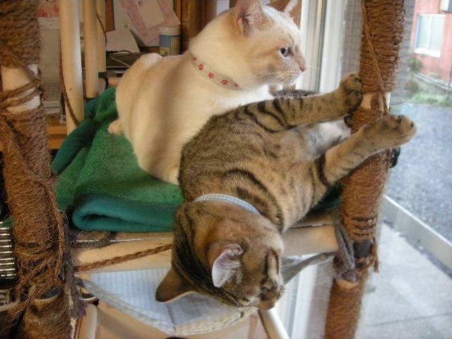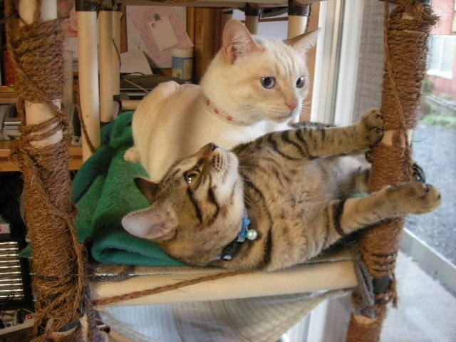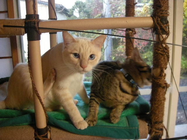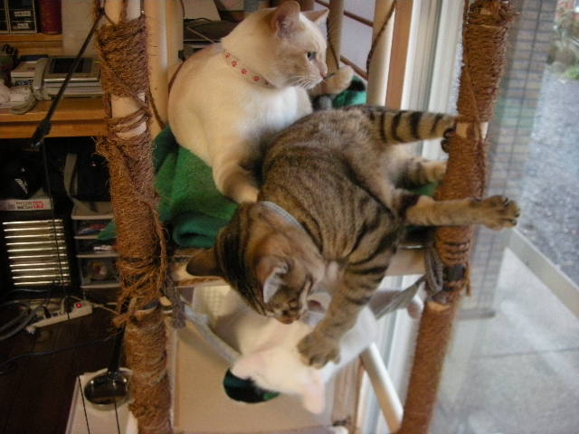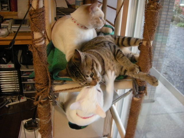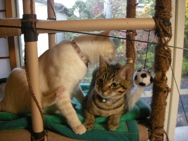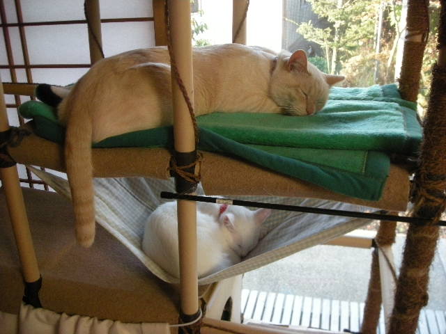 そろそろなおさないとなと思っているモカタワー。ぼろぼろですが3匹の憩いの場です。