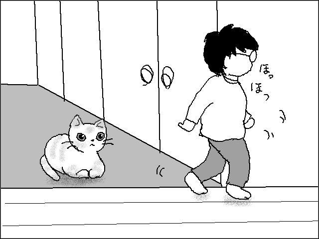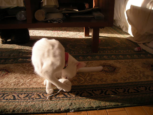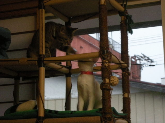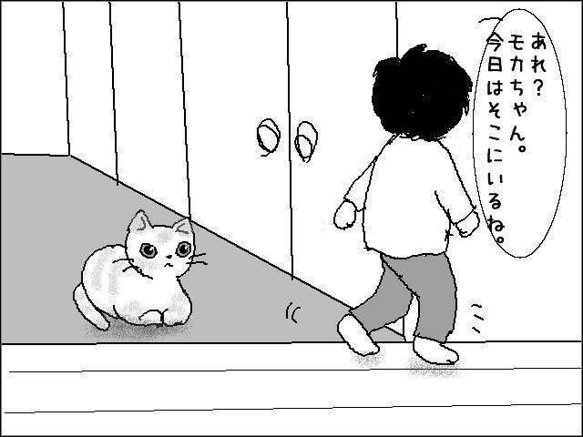 アクアはモカの警戒を聞いてか、ファンヒーターには近づきません。
